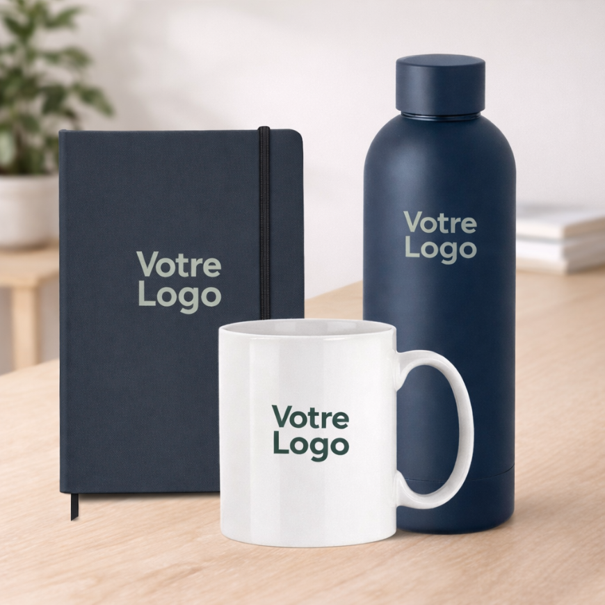 Gourdes, carnets, stylos, mugs …