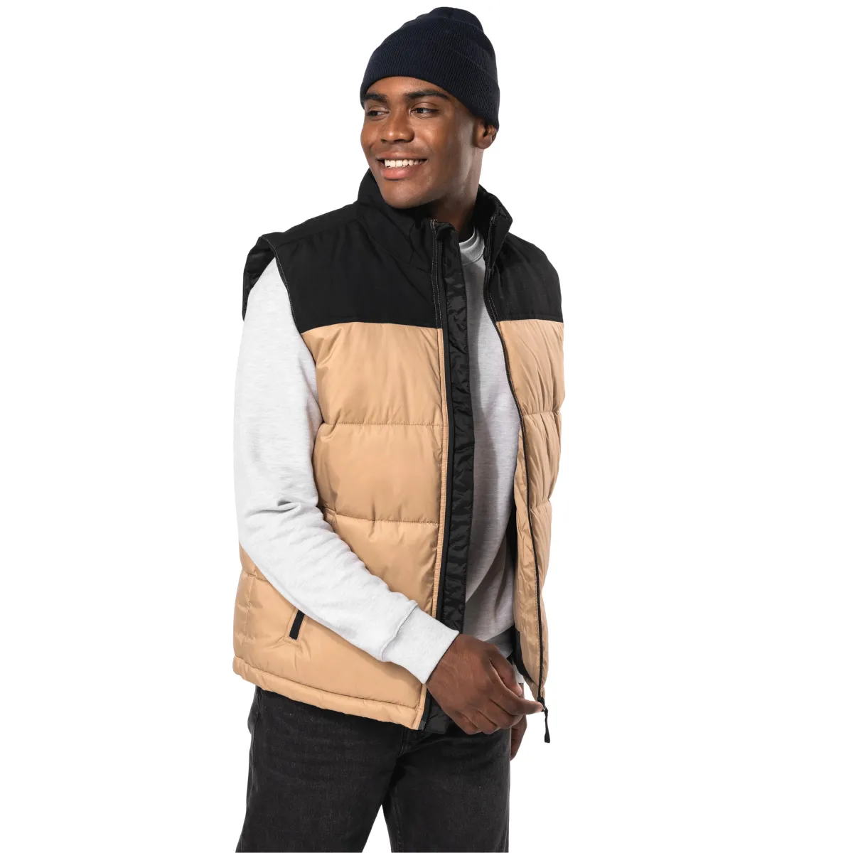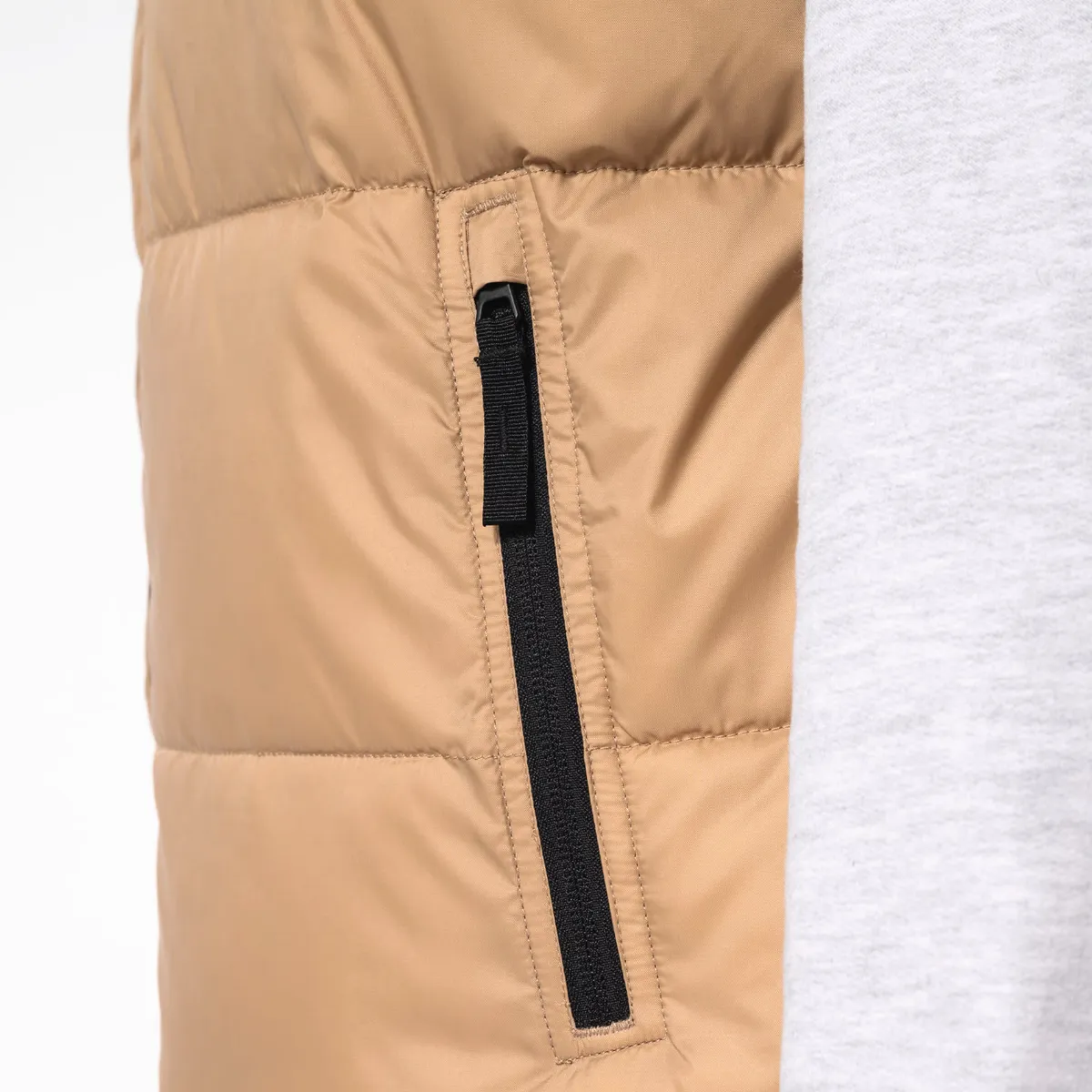 À l’intérieur, une doublure taffetas 100 % polyester et un garnissage injecté assurent une isolation thermique confortable. Les 2 poches zippées à zip inversé, la poche intérieure auto-agrippante et le col montant avec empiècement complètent un gilet pensé pour être porté tous les jours.