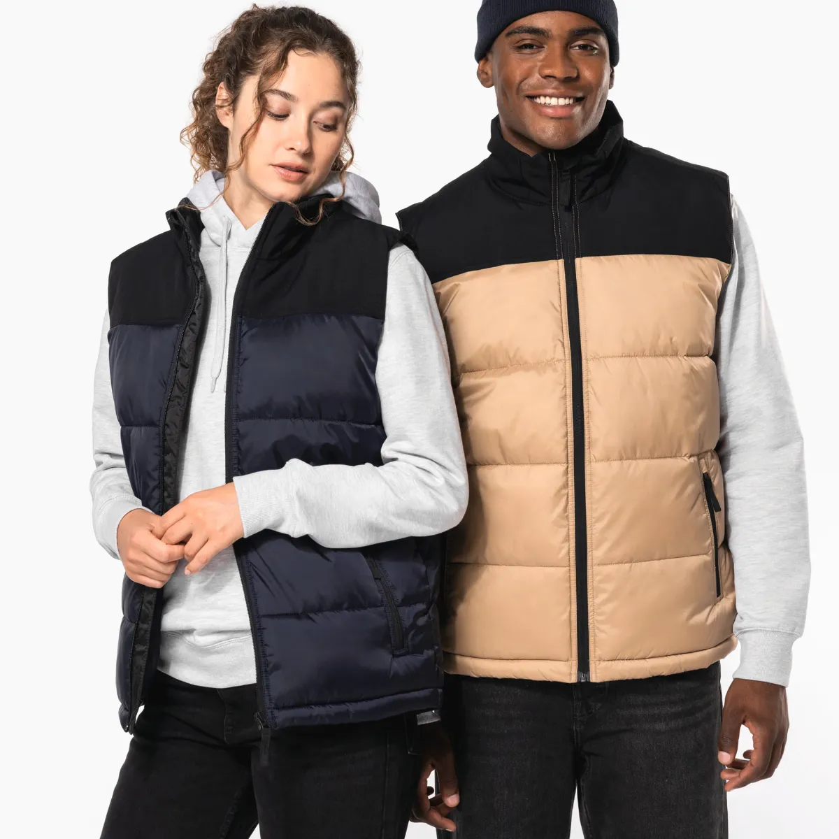 Le bodywarmer matelassé bi-ton K6162 de KARIBAN allie polyamide 210T et taslon 500D pour un rendu urbain résistant. Déperlant, antistatique, garnissage injecté. 3 coloris, XS à 4XL — prêt à recevoir ton logo.