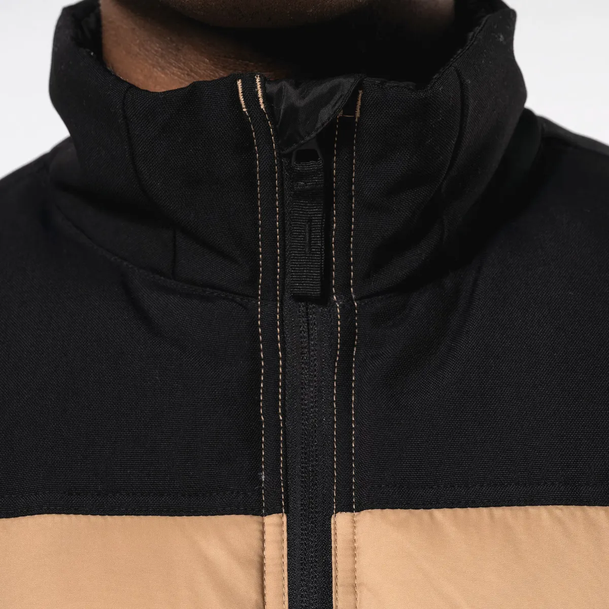Disponible en 3 coloris (Black, Navy/Black, Wet Sand/Black) du XS au 4XL, il est conçu sans étiquette de marque pour faciliter ta personnalisation. Deux zips invisibles intérieurs (dos et poitrine) sont prévus pour le marquage. Idéal pour habiller ton équipe en broderie, sérigraphie, transfert ou DTF.