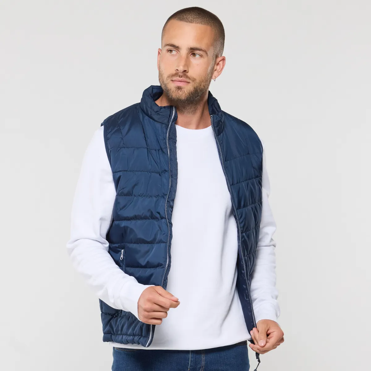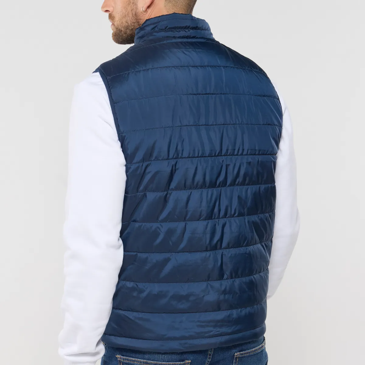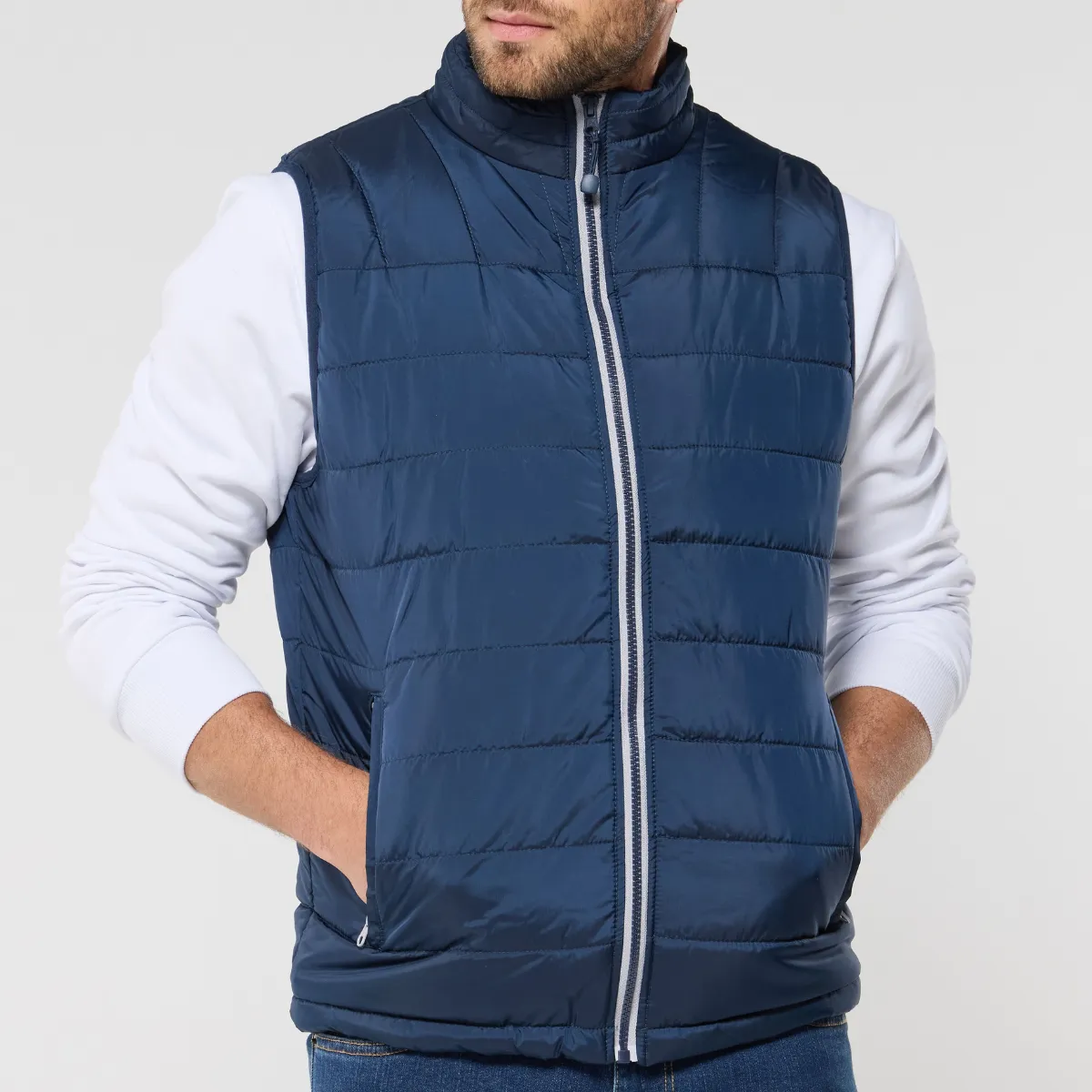 Le bodywarmer homme matelassé PK310 est déperlant, coupe-vent et disponible en 16 coloris bi-ton. Extérieur polyester pongé 68 g/m², intérieur matelassé 140 g/m². Tailles S à 6XL — parfait pour personnaliser au logo de ton équipe.
