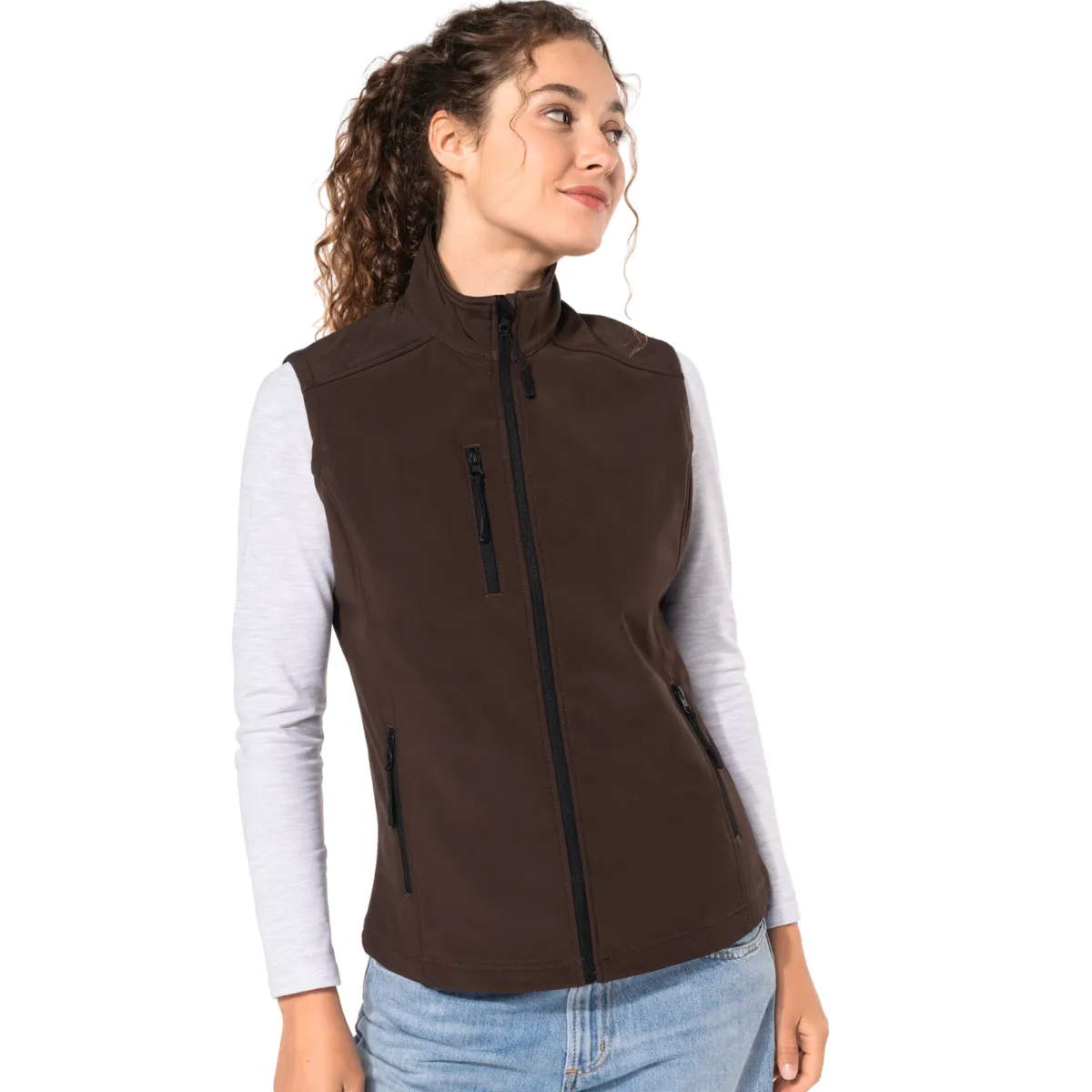 Le bodywarmer softshell femme K404 de Kariban combine protection 3 couches, coupe ajustée et style. Imperméable 8000 mm, respirant et coupe-vent, il est idéal pour équiper ton équipe avec un vêtement technique personnalisable.