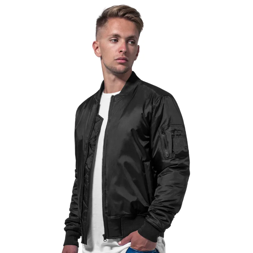 La veste bomber unisexe personnalisable BUILD YOUR BRAND revisite un classique du streetwear. Légère, moderne et pratique, elle est parfaite pour personnaliser tes collections, clubs ou événements.