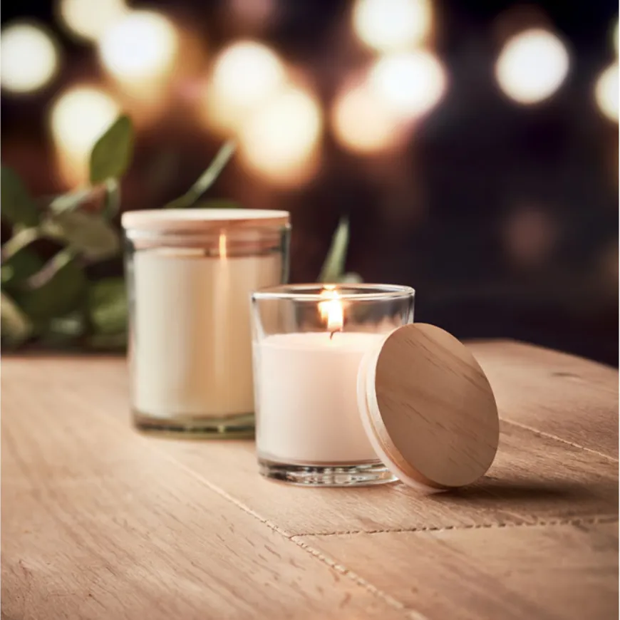 La bougie parfumée personnalisable MO6281 apporte une touche naturelle et élégante à ton univers. Présentée dans un verre avec couvercle en bambou, elle diffuse un parfum vanille doux et chaleureux. Idéale pour les cadeaux d’entreprise, événements ou coffrets bien-être personnalisés.