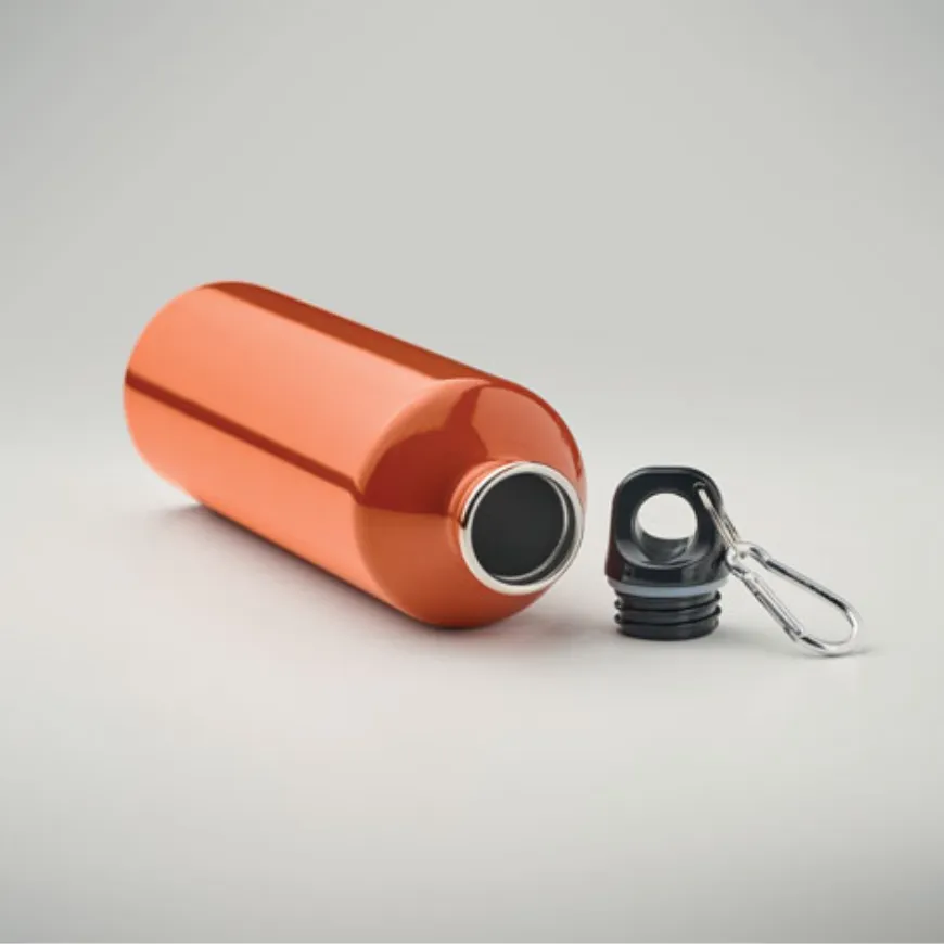 Cette bouteille personnalisable 750 ml en acier inoxydable recyclé est équipée d’un mousqueton pour un transport pratique. Sa conception à simple paroi la rend légère et facile à utiliser au quotidien. Un support de communication utile et responsable.