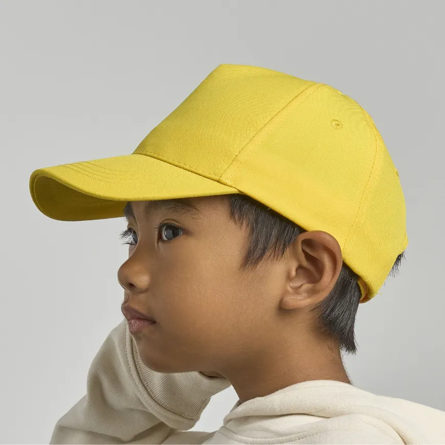 Proposée en 8 coloris variés, la casquette enfant 5 pans recyclée personnalisable offre une surface idéale pour afficher un logo ou une identité visuelle, que ce soit pour un club, une école ou un événement.
