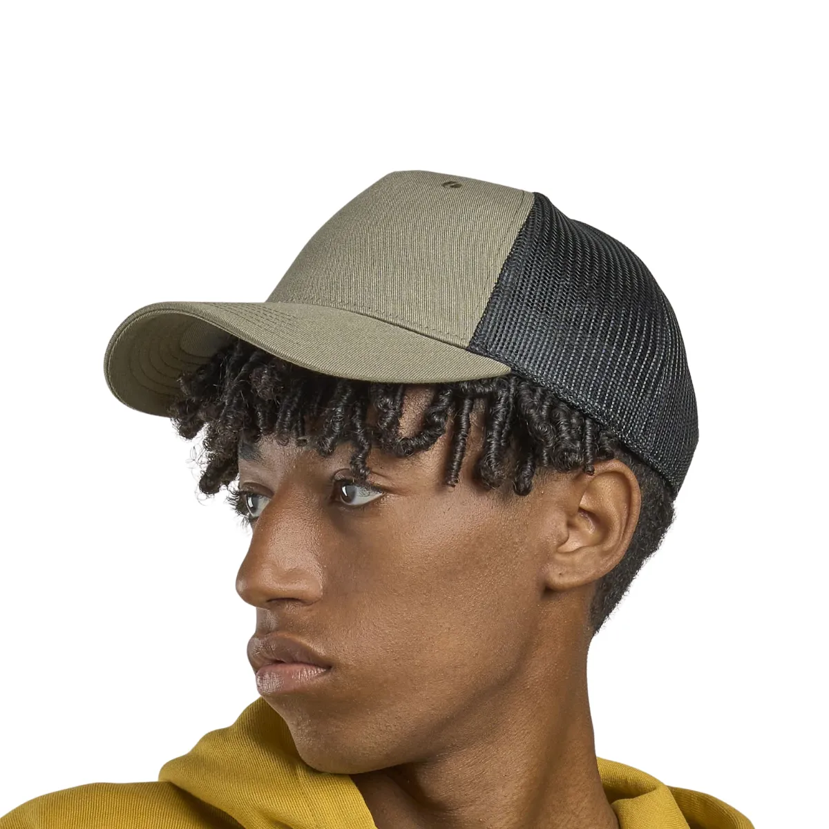 Cette casquette trucker personnalisable recyclée est conçue pour les marques et événements recherchant une option responsable. Sa construction 5 panneaux offre une surface de marquage efficace.