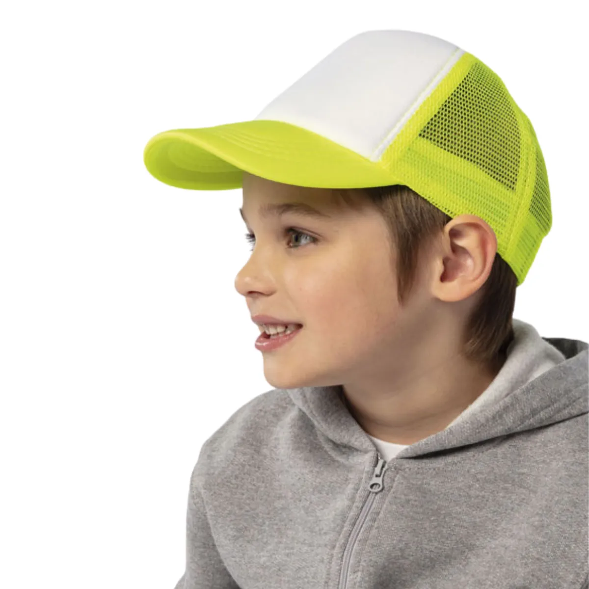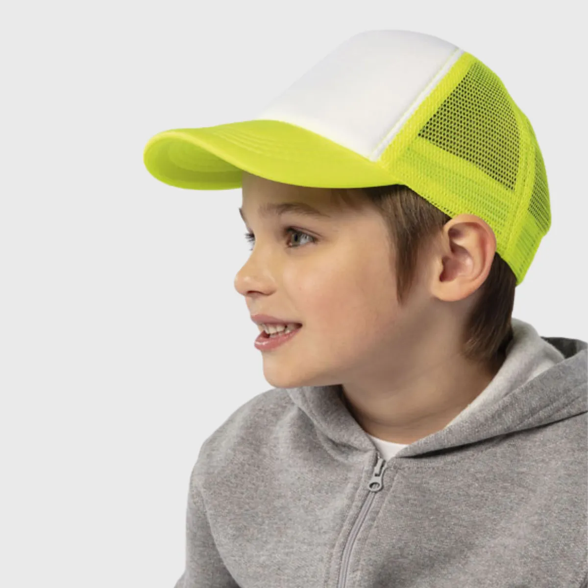 Cette casquette enfant personnalisable style trucker est conçue pour les écoles, événements et merchandising junior. Sa construction 5 panneaux offre une surface de marquage idéale.