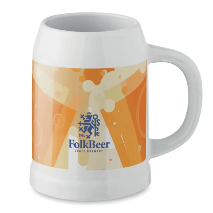 Découvre cette chope de bière personnalisable en céramique en grès avec revêtement spécial pour la sublimation. Avec sa capacité généreuse de 500 ml, elle offre un support idéal pour des visuels éclatants et durables sur tes objets promotionnels.