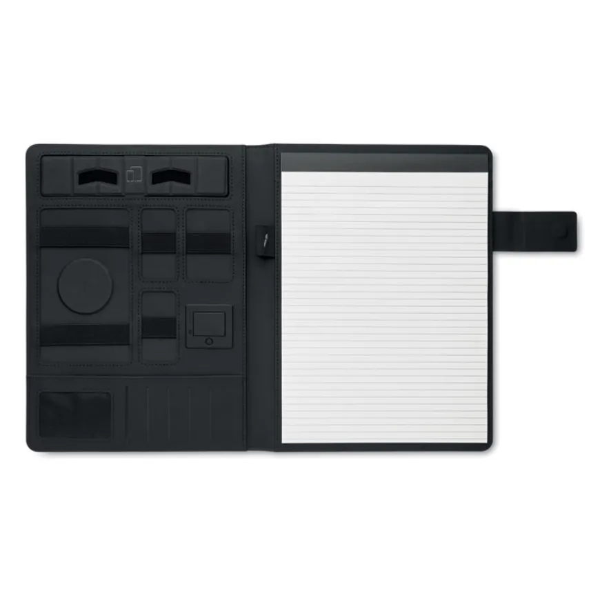 Équipé d’une power bank de 5000 mAh et d’un chargeur magnétique sans fil 15W, il te permet de recharger ton smartphone ou tes accessoires électroniques à tout moment. À l’intérieur, tu retrouveras plusieurs compartiments de rangement pratiques, un porte-stylo élastique et un bloc-notes de 20 feuilles lignées pour prendre des notes en toute circonstance.