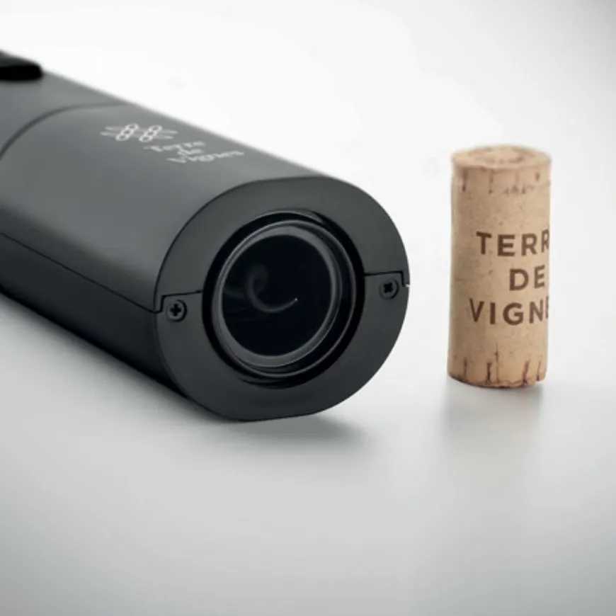 Personnalise-le avec ton logo gravé ou imprimé pour une touche premium. Ce décapsuleur électrique est un cadeau d’affaires original, à la fois pratique et raffiné, parfait pour renforcer ton image de marque autour de l’art du vin.
