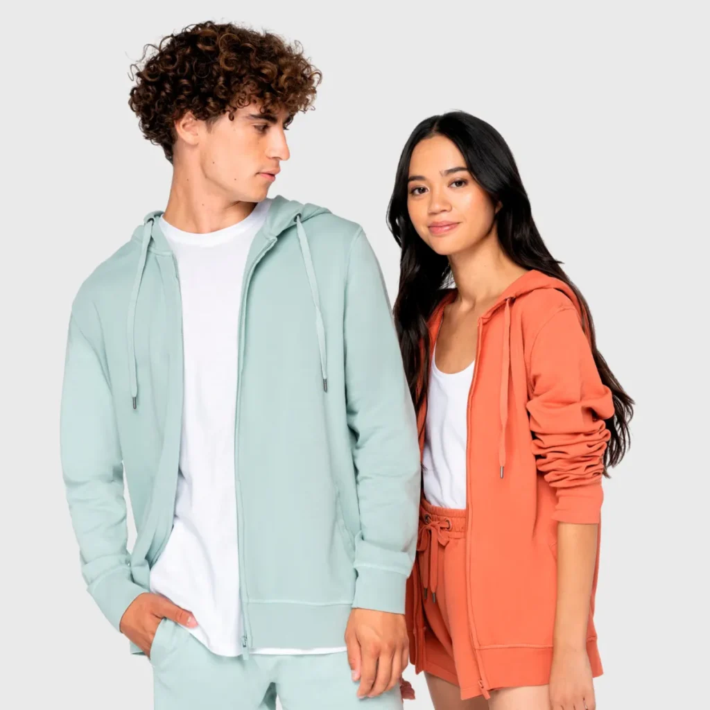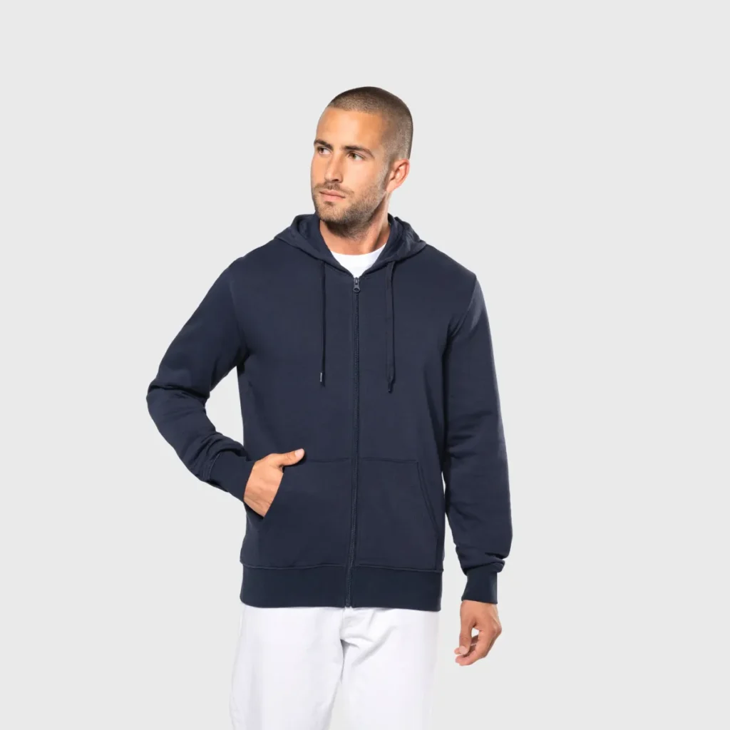 Sweat capuche zippé French Terry écoresponsable personnalisable
