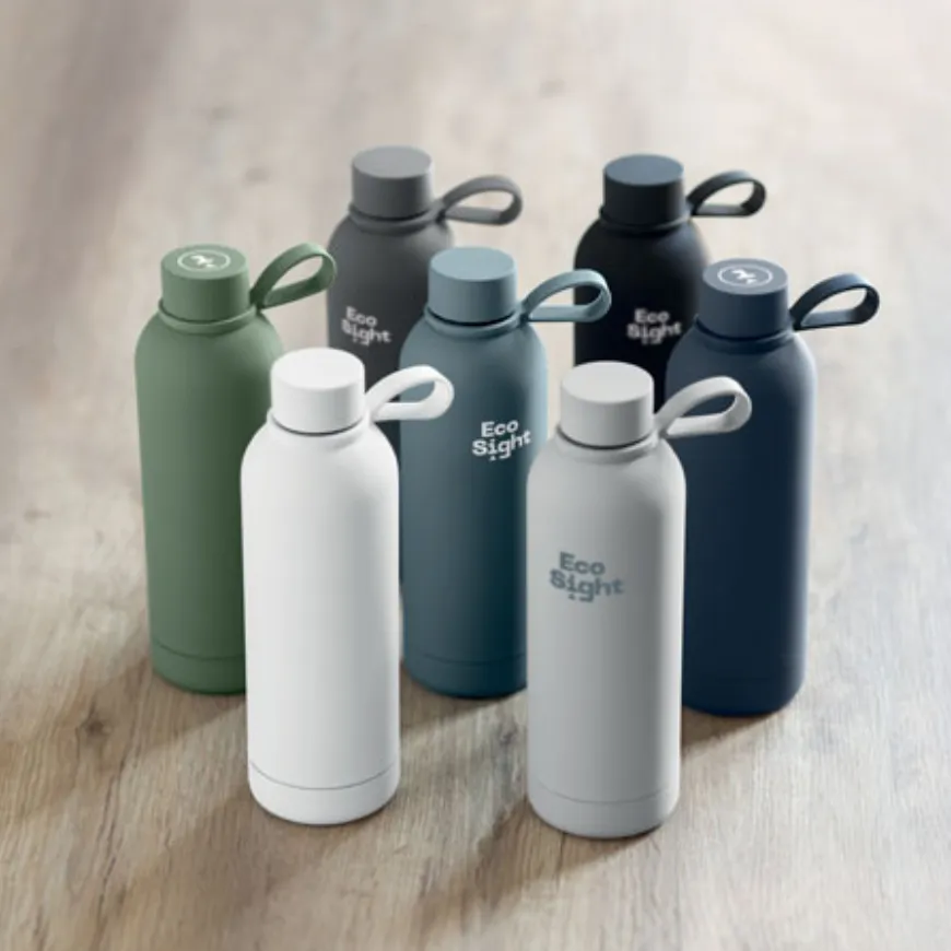 La bouteille EMERALD personnalisable MO2315 est une bouteille isotherme double paroi en acier inoxydable recyclé avec finition caoutchoutée et poignée en silicone. Anti-fuite et durable, elle conserve la température de tes boissons tout en valorisant ton image écoresponsable.