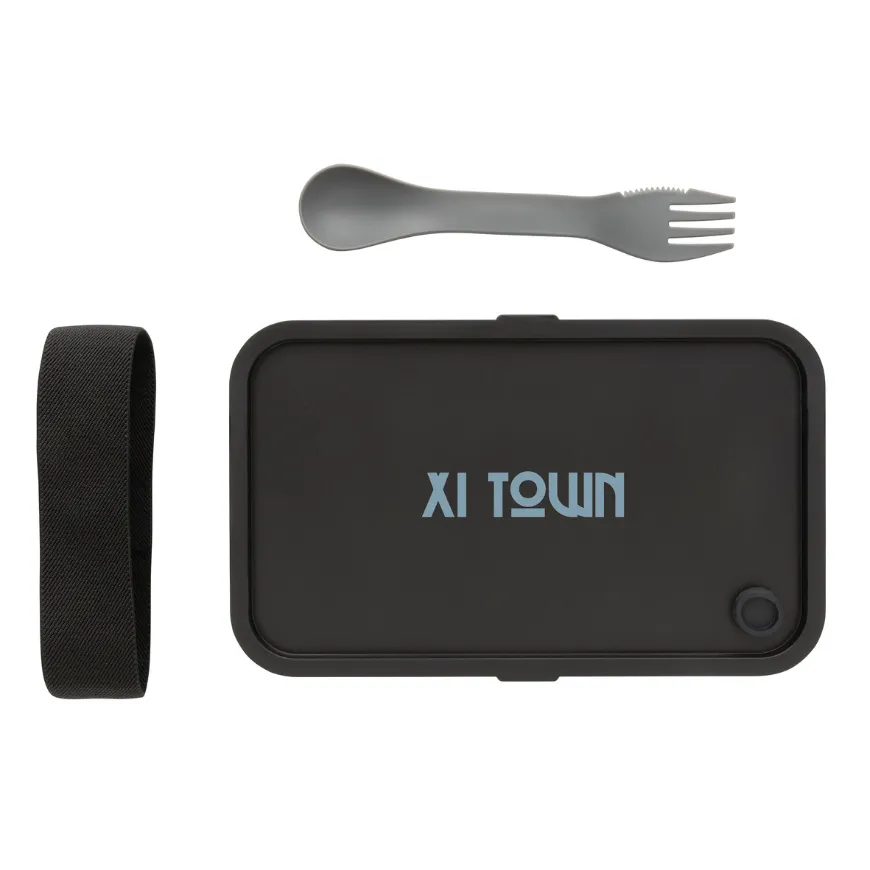 La lunch box personnalisable XD COLLECTION P269.052 est conçue en polypropylène recyclé certifié GRS. Avec sa capacité de 0,8 L, elle est parfaite pour transporter tes repas, sandwiches ou salades au quotidien. Fournie avec une cuillère/fourchette pratique et une sangle élastique, elle allie style, fonctionnalité et engagement durable.