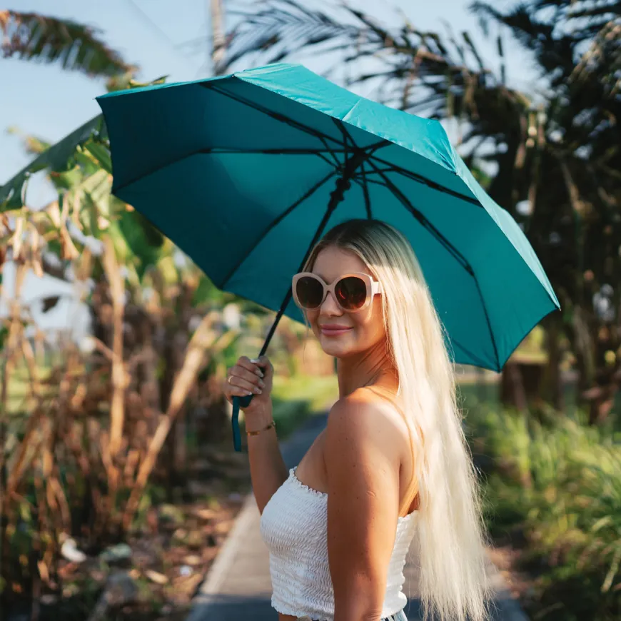 Ce mini parapluie personnalisable à 3 sections est doté d’une ouverture automatique et d’un format compact, idéal à glisser dans un sac ou une voiture. Conçu en rPET certifié AWARE™, il allie praticité et démarche responsable.