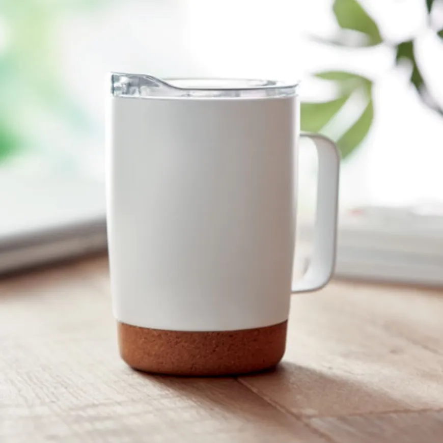 Le mug personnalisable MO6533 associe l’élégance du liège naturel à la robustesse de l’acier inoxydable à double paroi. Sa capacité de 300 ml et son couvercle coulissant anti-fuite en font un indispensable du quotidien : au bureau, en déplacement ou lors d’un événement. Un design moderne et pratique pour savourer ton café ou ton thé avec style.