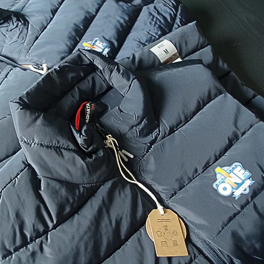 Bodywarmer avec marquage DTF réalisé pour un événement.