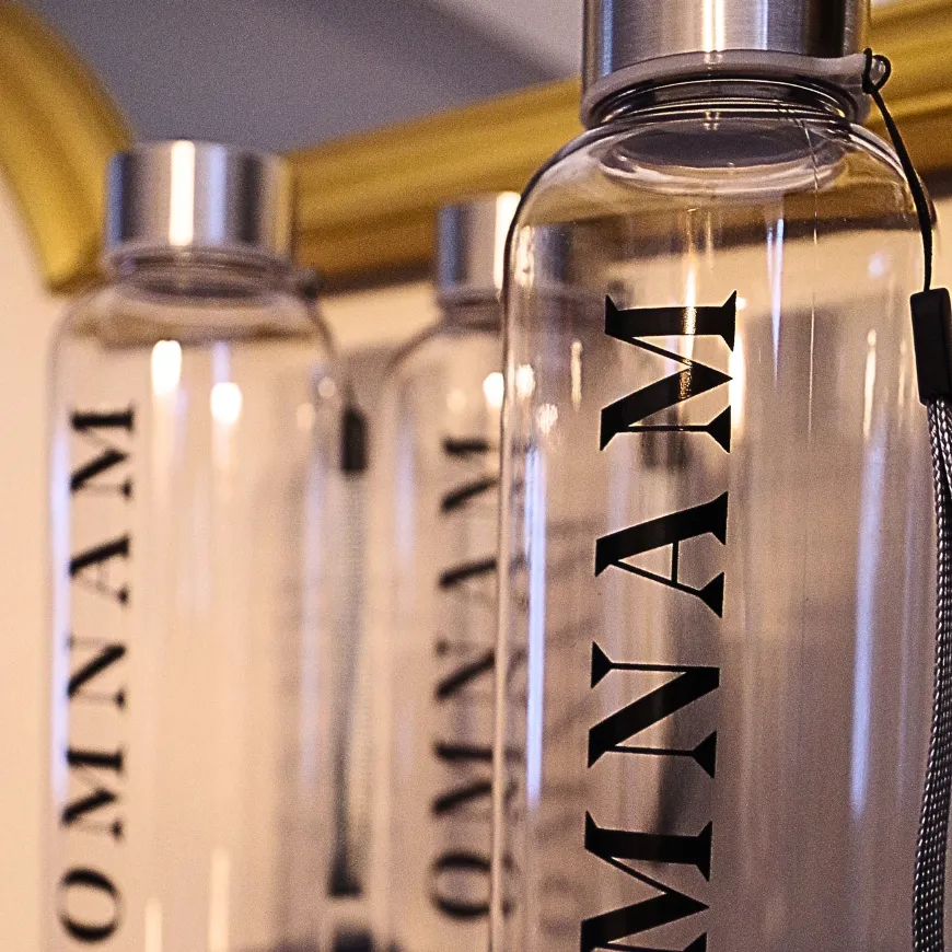 Gourde en verre réalisée pour un séminaire Omnam.