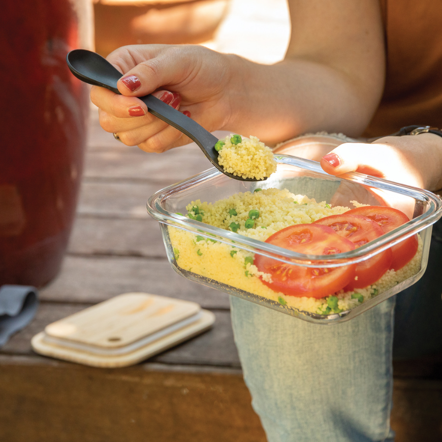 Options : couvercle hermétique, couverts inclus, sac isotherme assorti.