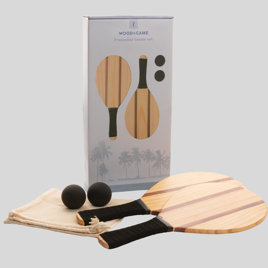 Gravure laser : Sur le bois (quilles, raquettes) pour un rendu premium et inaltérable.