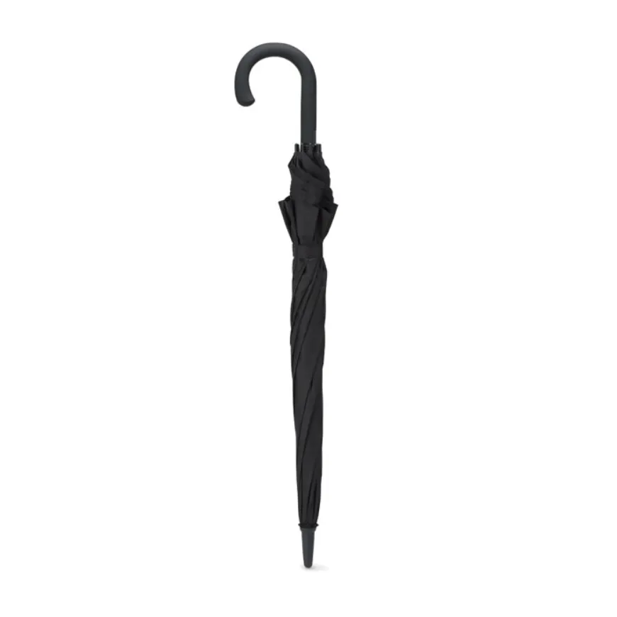 Le parapluie NEW QUAY est un grand parapluie de tempête personnalisable conçu pour offrir une excellente protection et un style professionnel. Son ouverture automatique et sa poignée incurvée en ABS noir en font un allié à la fois robuste et élégant.