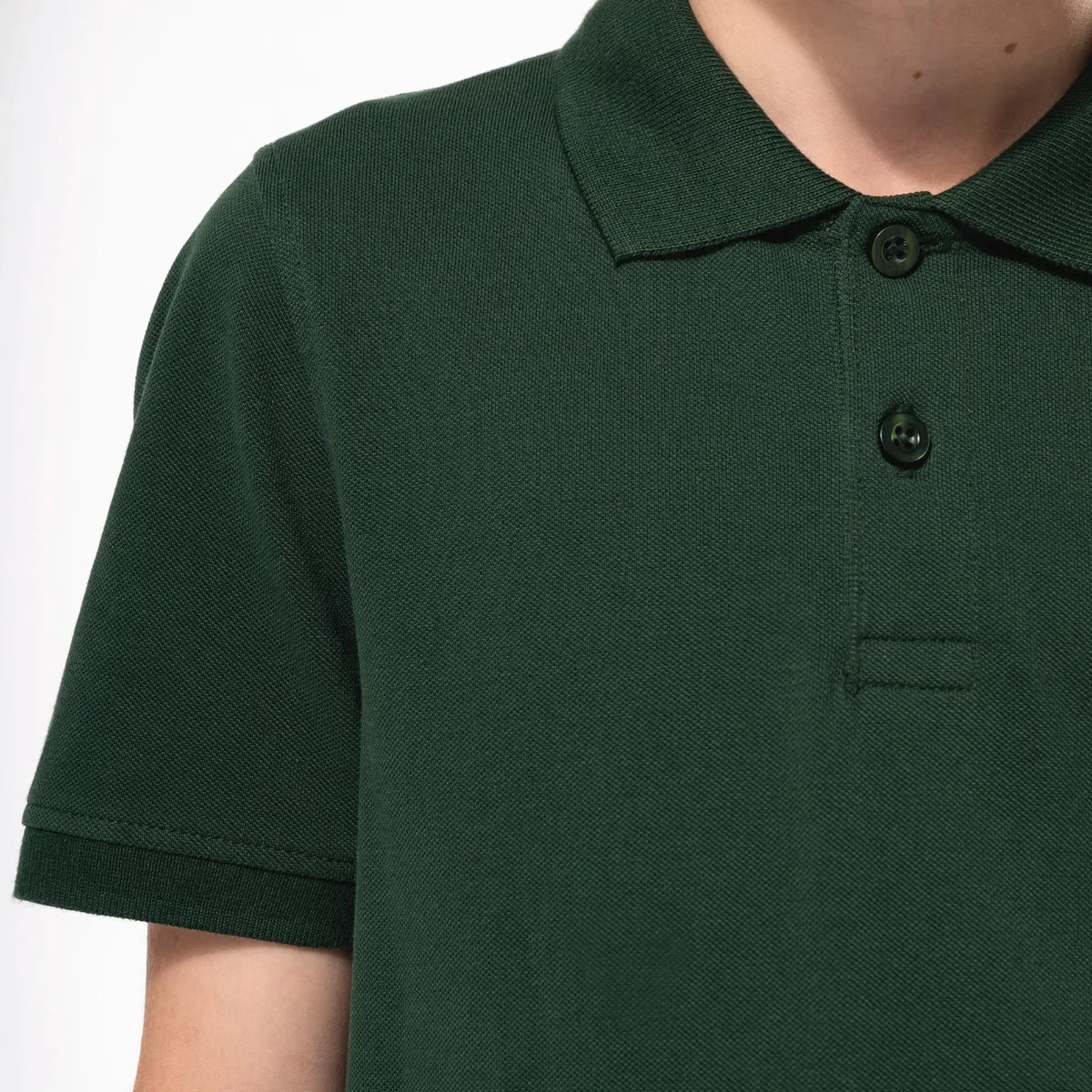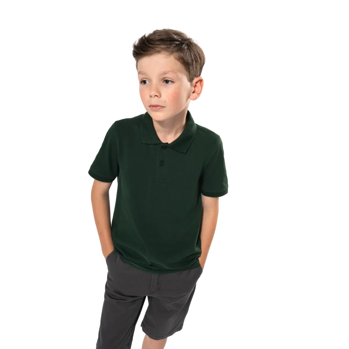 Polo piqué enfant en coton RingSpun peigné 132 g/m², coupe Straight, sans étiquette au col pour faciliter la personnalisation. Côtes élasthanne pour une tenue durable. 9 coloris, tailles 8/10 et 10/12. Personnalisable en broderie, sérigraphie ou DTF.
