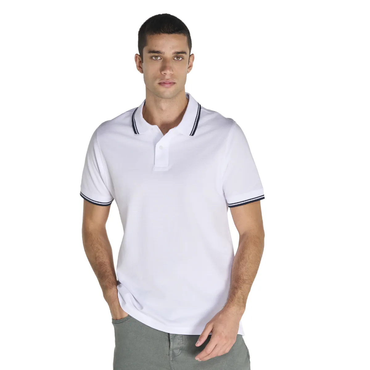 Polo homme bi-ton en 100% coton peigné pré-rétréci 210 g/m², maille piquée, col et manches en bord-côte 1×1 contrastants. 11 coloris bi-tons, tailles S à XXL, personnalisable en broderie, sérigraphie et transfert.