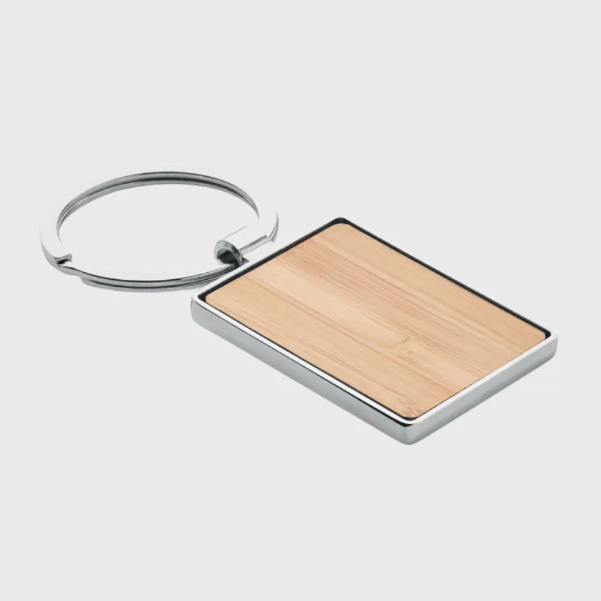 Porte-clés rectangulaire personnalisable associant bois et alliage de zinc pour un rendu sobre et efficace. Un support compact et élégant pour mettre en avant ton logo au quotidien. Parfait comme goodie professionnel à forte visibilité.
