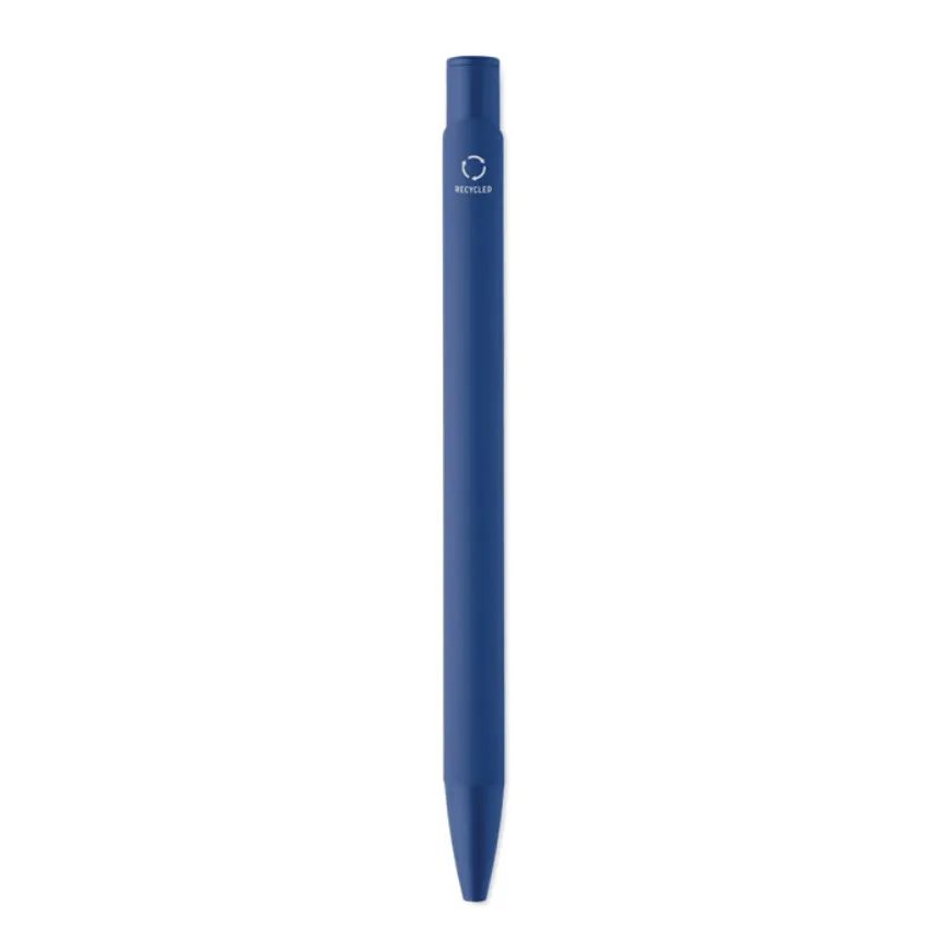 Stylo à bille personnalisable en aluminium recyclé avec corps caoutchouté. Un stylo agréable en main et durable, idéal pour une communication soignée au quotidien.
