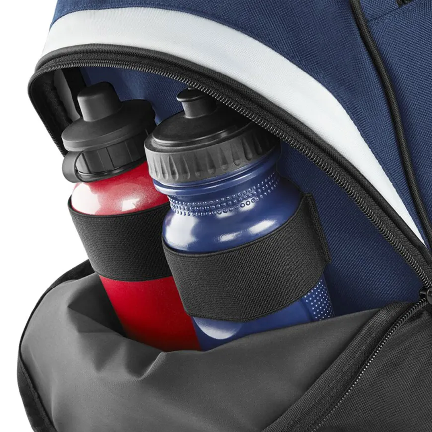 Pratique et bien organisé, il dispose d’une poche frontale spécialement conçue pour une décoration facile, idéale pour mettre en avant ton logo. Une poche ventilée pour chaussures ou affaires mouillées ainsi que des boucles élastiquées pour bouteilles complètent son équipement intelligent.