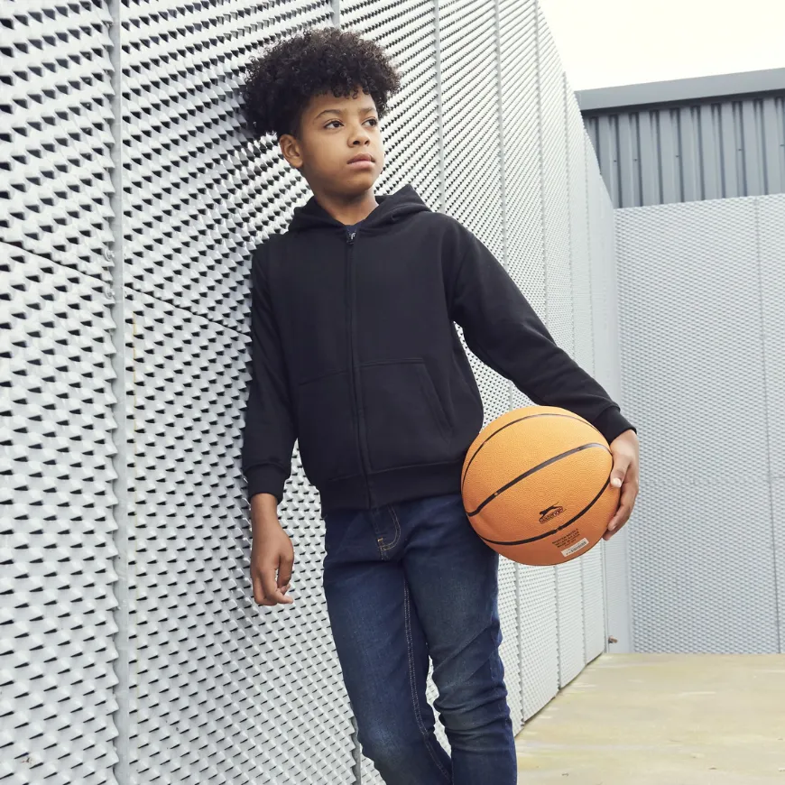Le sweat à capuche zippé enfant personnalisable JH050J Just Hoods est pratique et confortable, avec capuche doublée, poches kangourou et intérieur gratté. Un basique idéal pour équiper écoles, clubs ou associations.