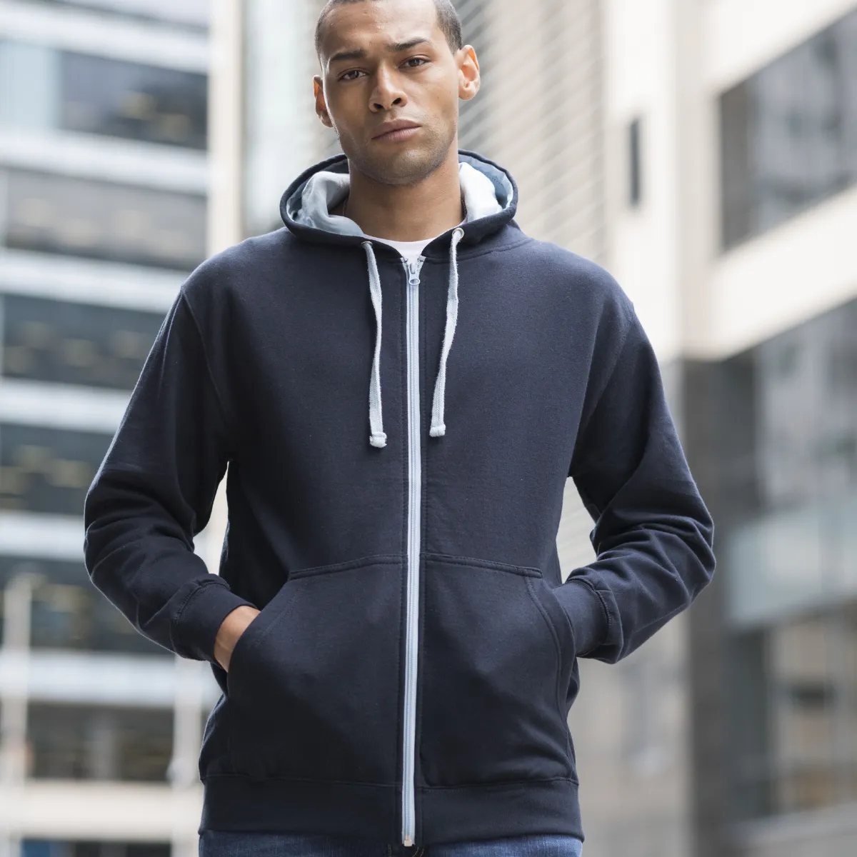 Découvre ce sweat capuche zippé personnalisable contrasté conçu pour un style moderne et visible. Sa doublure capuche et zip contrastés renforcent l’impact visuel. Son intérieur brossé 280 g apporte confort au quotidien.