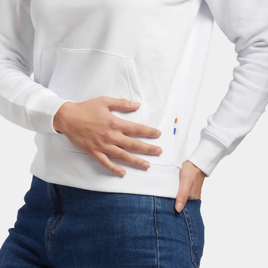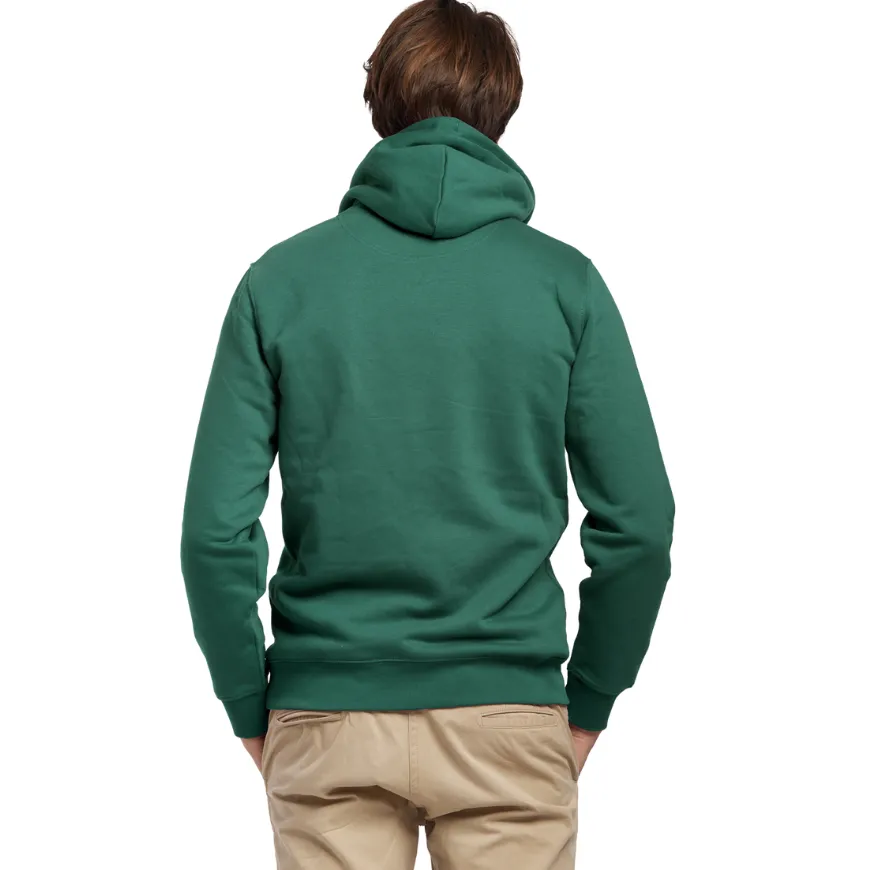 Avec son molleton Terry lavé 350 g/m², non gratté pour éviter le boulochage, et son traitement silicone qui améliore la tenue dans le temps, ce hoodie garantit une excellente résistance. Sa capuche doublée, ses cordons ton sur ton avec embout métal et sa poche kangourou apportent un vrai confort au quotidien.