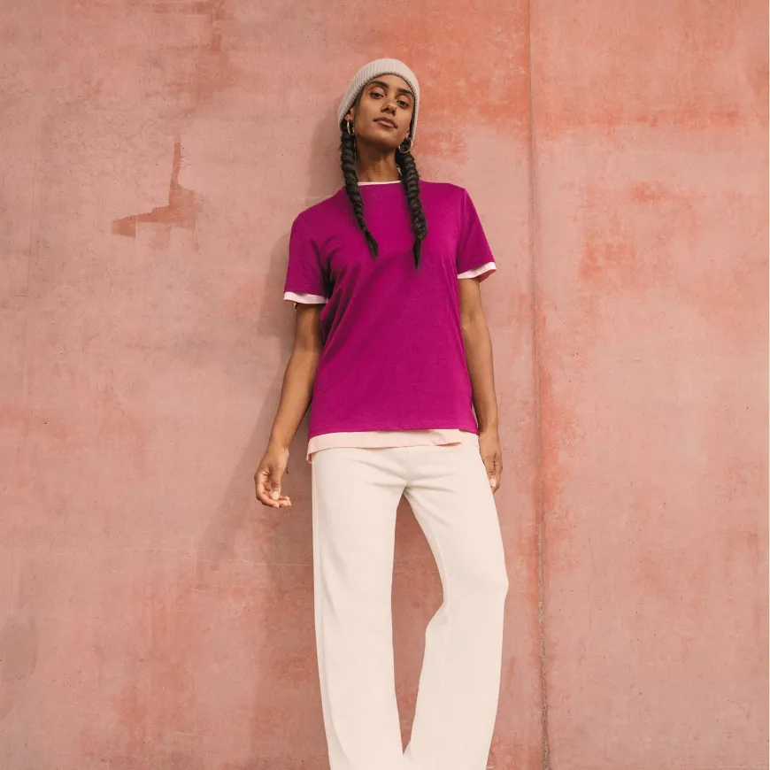 Sa coupe ajustée, ses coutures latérales et son col en bord-côte assurent une tenue moderne et durable. Le coloris Raw Natural se distingue par son aspect brut, texturé et naturel.