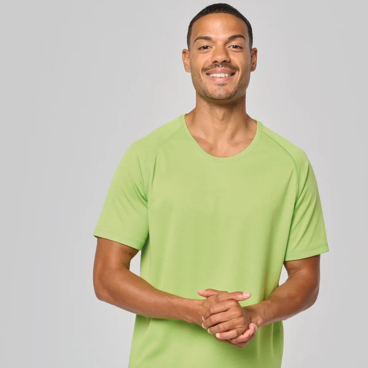 Un t-shirt de sport personnalisable homme en 100 % polyester 140 g/m², ultra léger, respirant et à séchage rapide. Manches raglan avec points de recouvrement, encolure ronde avec bande de propreté et finition double aiguille pour une tenue optimale à l’effort. Disponible en 26 coloris du XS au 3XL — idéal pour les clubs sportifs et équipes.