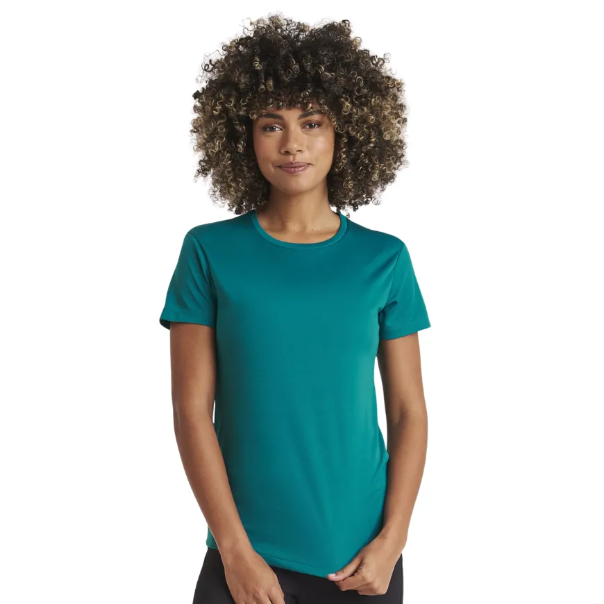 Le T-shirt technique respirant femme 140 g/m² personnalisable JUST COOL en polyester Neoteric™ combine légèreté, séchage rapide et protection UPF 30+. Idéal pour personnaliser les tenues sportives et associatives.