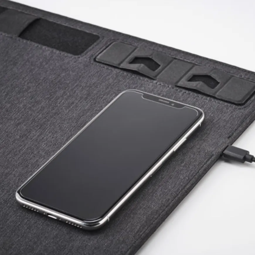Le SUPERPAD personnalisable est un tapis de souris multifonction pensé pour les professionnels modernes. Fabriqué en polyester RPET 300D deux tons, il combine une zone de travail confortable à une station de charge sans fil 15W et un support smartphone intégré.
