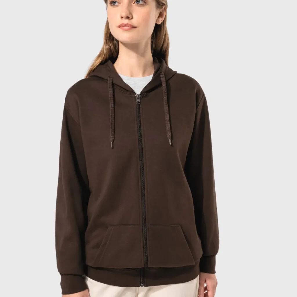 Ton logo placé sur un sweat col rond, une capuche zippé ou un pull unisexe : chaque pièce devient une vitrine ambulante. Idéal pour :