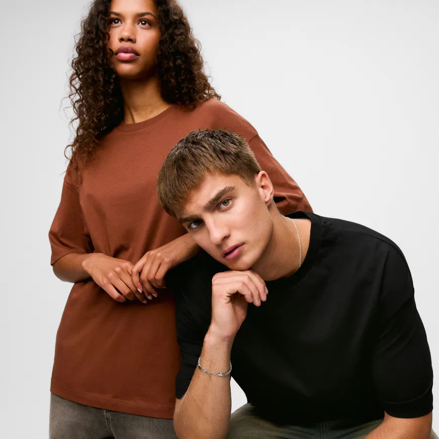 Tu choisis ton modèle (coupe droite, coupe large, oversize, unisexe, femme, homme, enfant).