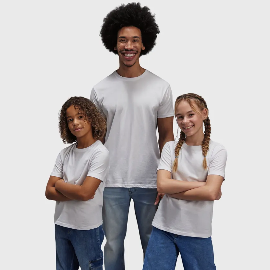 Tu choisis ton modèle (coupe droite, coupe large, oversize, unisexe, femme, homme, enfant).