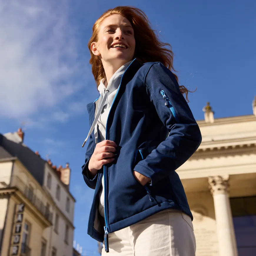 Veste softshell personnalisée : coupe technique, respirante, résistante aux intempéries. Parfaite pour les équipes en mouvement.
